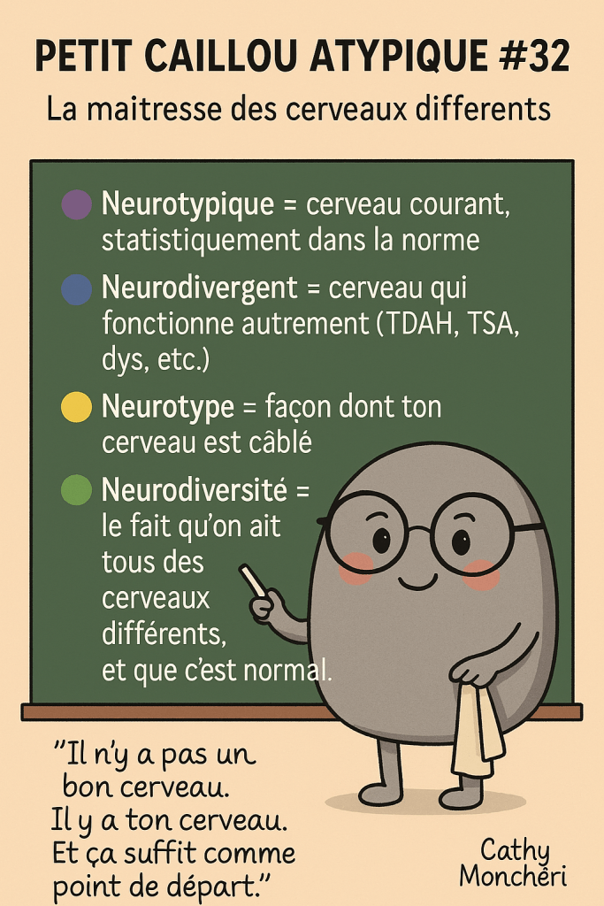 🔵 Neurodivergent = cerveau qui fonctionne autrement (TDAH, TSA, dys, etc.)