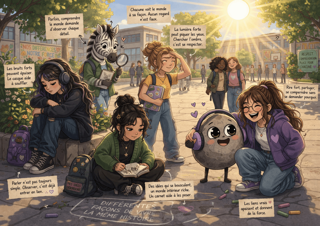 Dans un environnement adapté, ces mêmes différences deviennent des ressources…soutien, tentative de compréhension de l’autre, accompagnement adapté